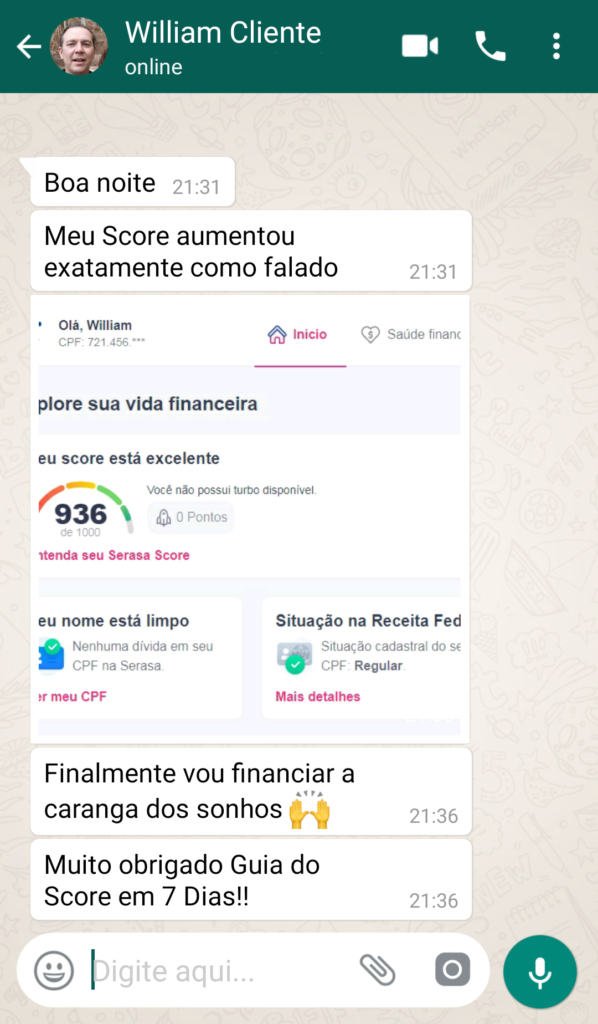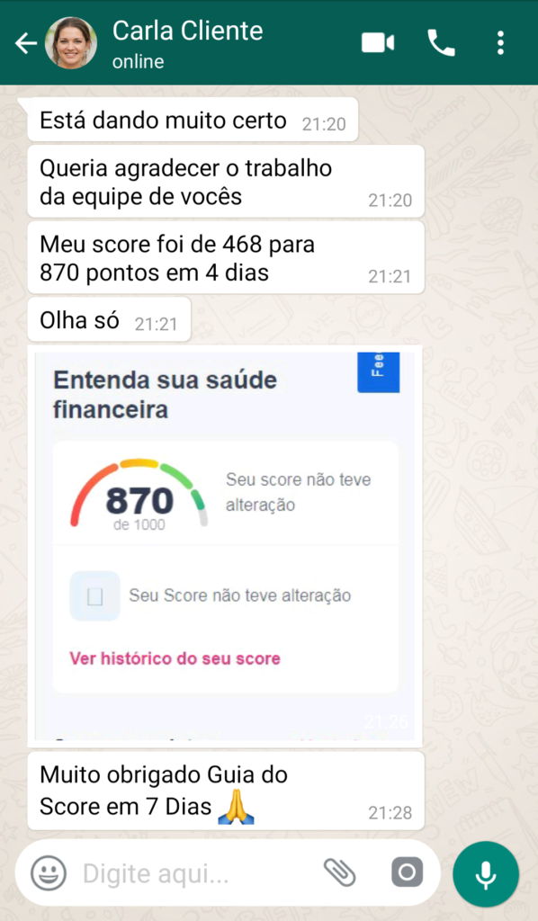 A grande maioria das pessoas que segue os 4 passos consegue ter esse resultado ou similar. Mas a nossa garantia é que você vai conseguir crédito no mercado novamente.